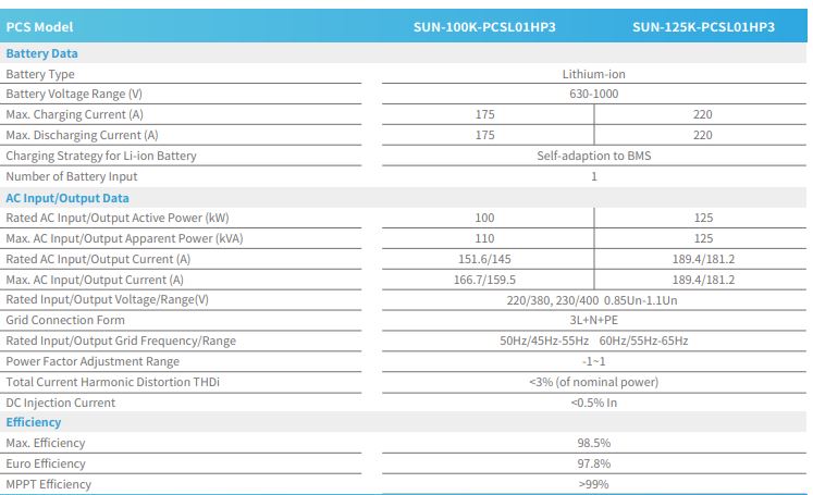 Model: SUN-125K-PCSL01HP3 (125 kW PCS Module)