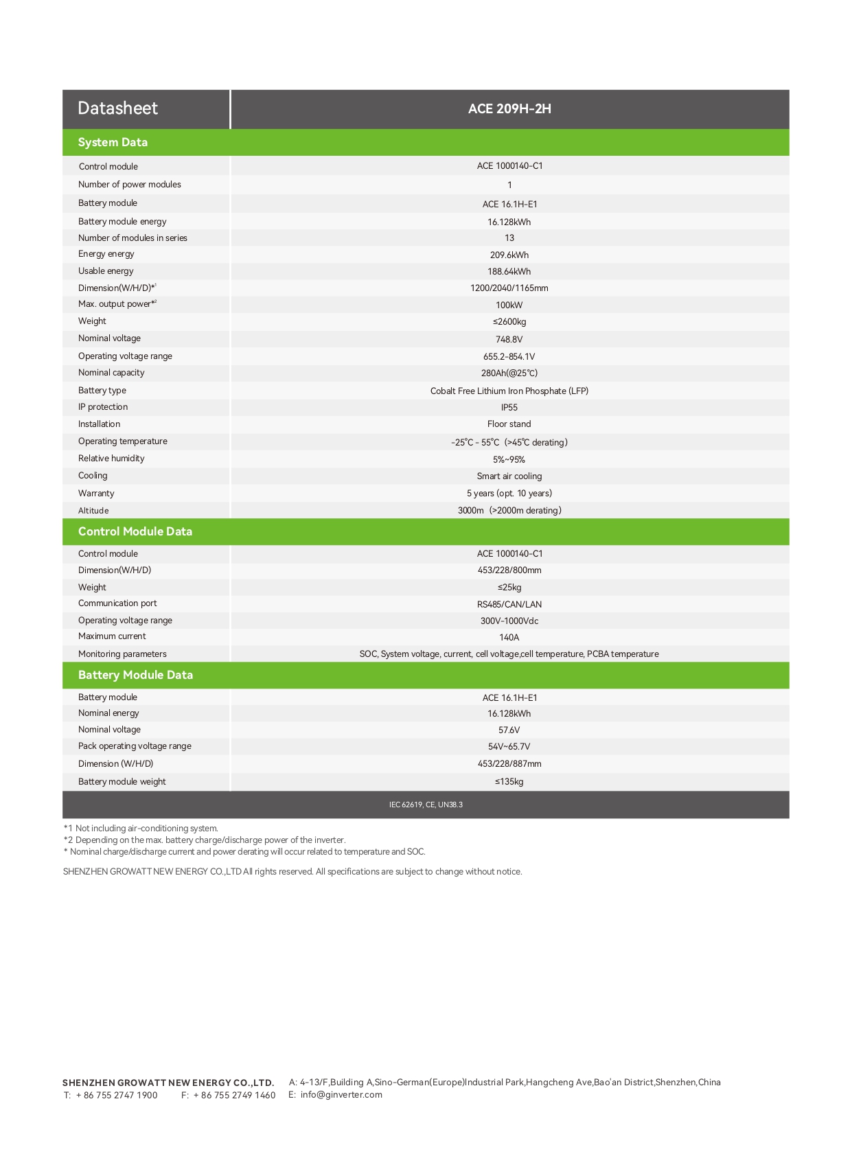 GROWATT Bateria ACE 209H-2H 209,6 kWh