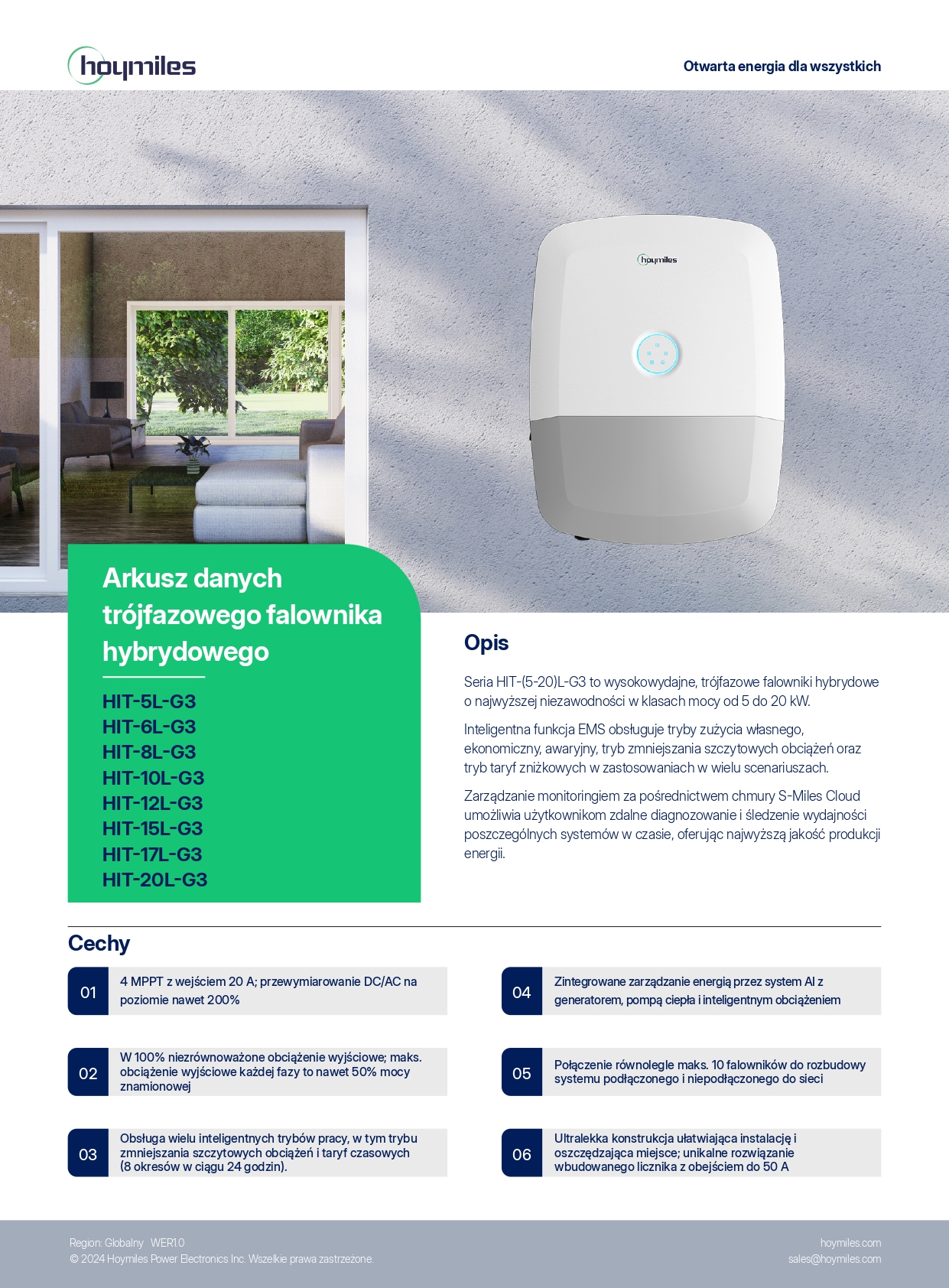 Seria HIT-(5-20)L-G3 to wysokowydajne, trójfazowe falowniki hybrydowe o najwyższej niezawodności w klasach mocy od 5 do 20 kW.