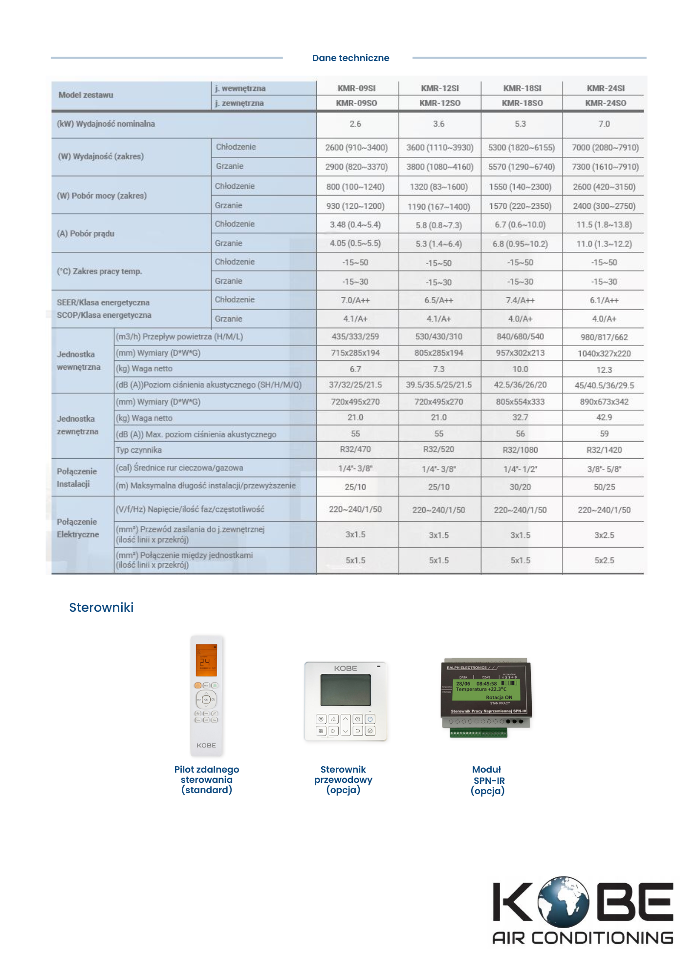 Klimatyzator ścienny KOBE Skyline 3,6 kW KMR-12SI + KMR-12SO ze sterowaniem WiFi i jonizacją powietrza.