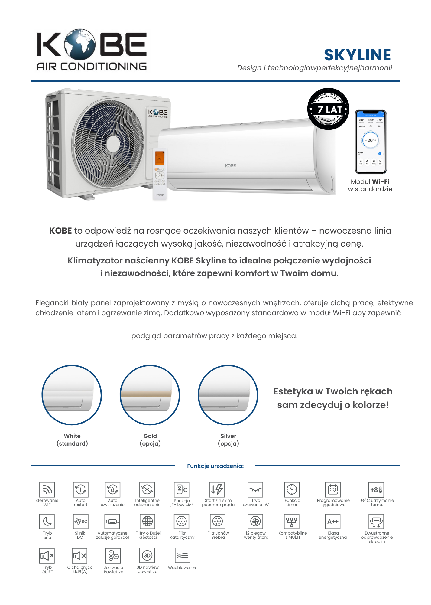 Klimatyzator naścienny KOBE Skyline to idealne połączenie wydajności i niezawodności, które zapewni komfort w Twoim domu lub firmie.
