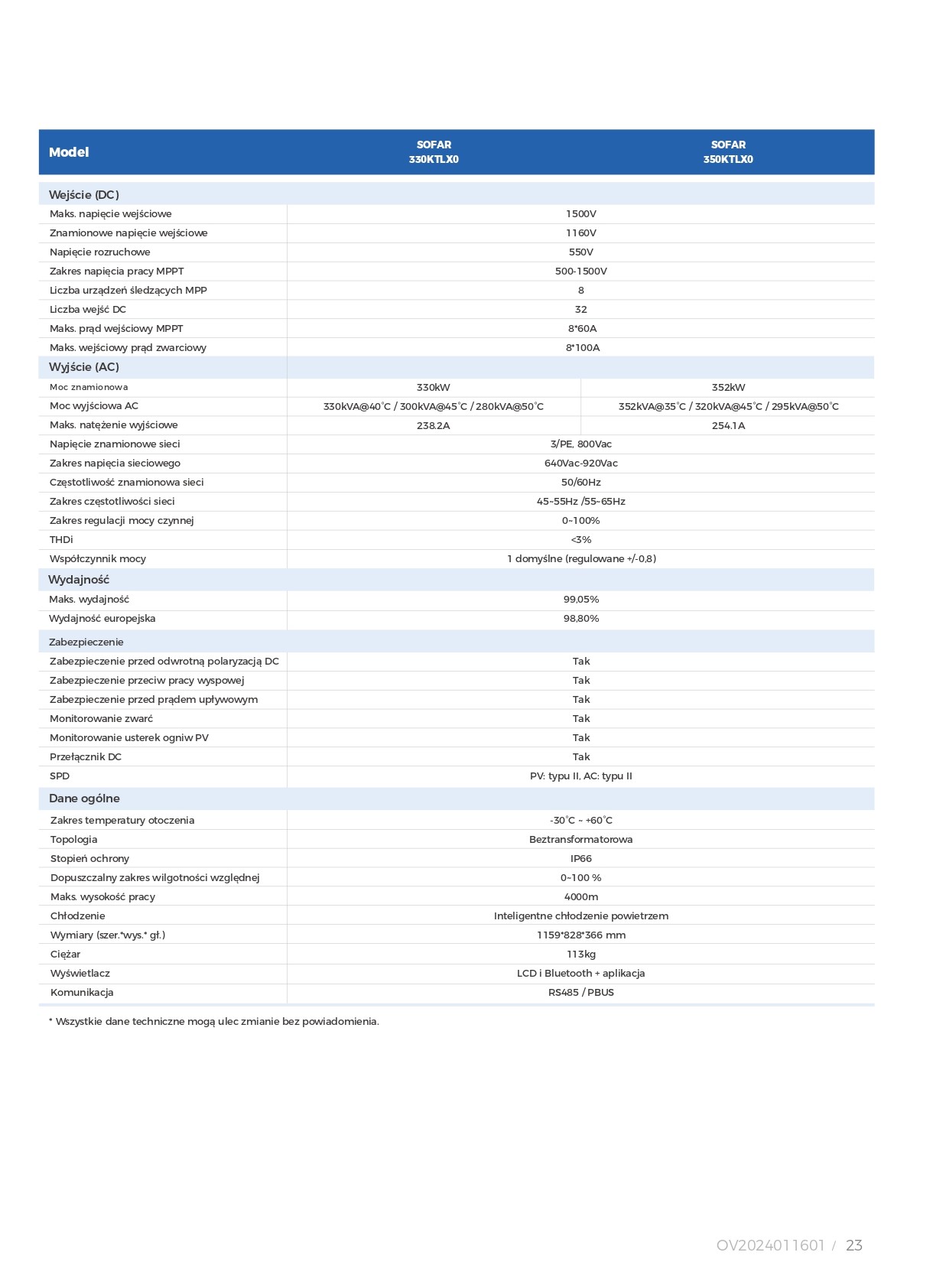 • SOFAR 330KTL-X0 Trzy fazowy WIFI&DC