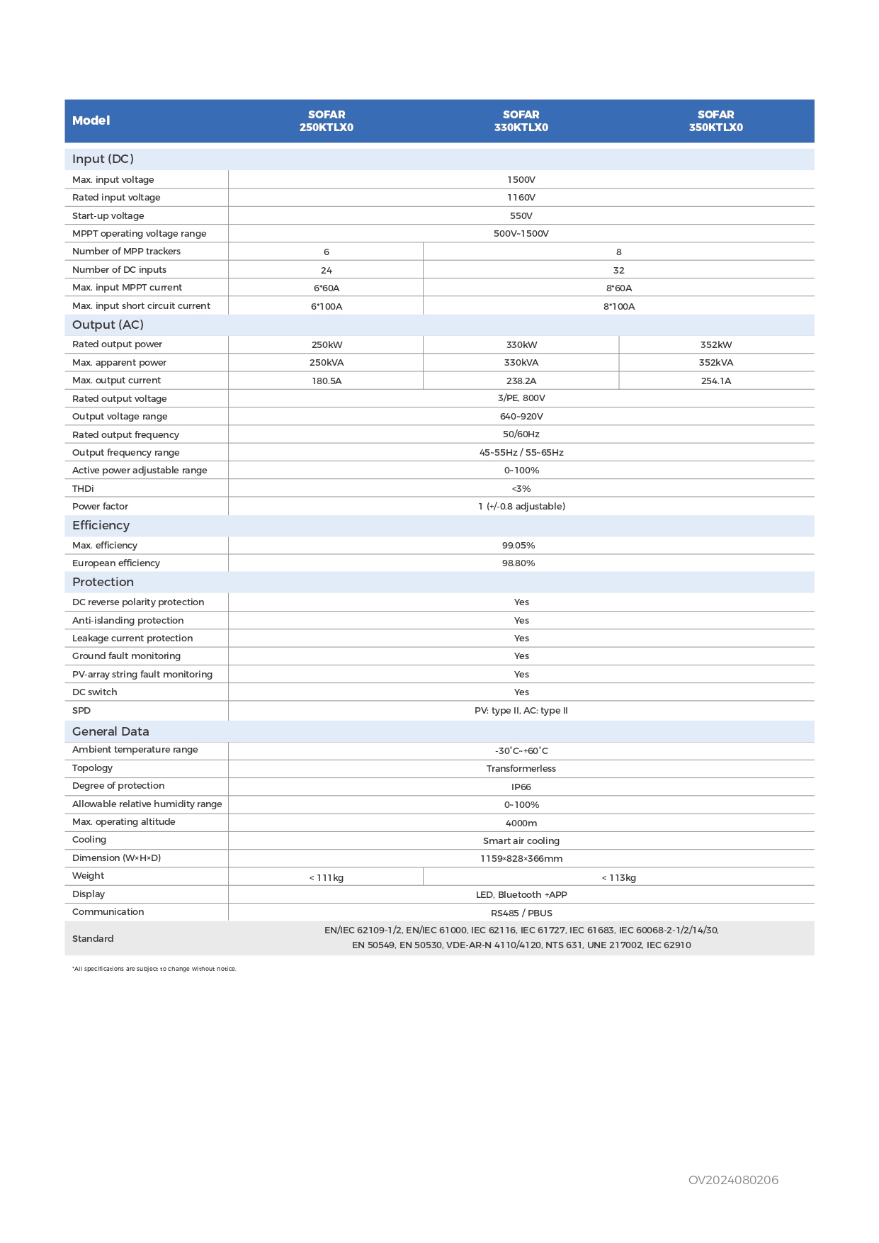 SOFAR 350KTL-X0 Trzy fazowy WIFI&DC