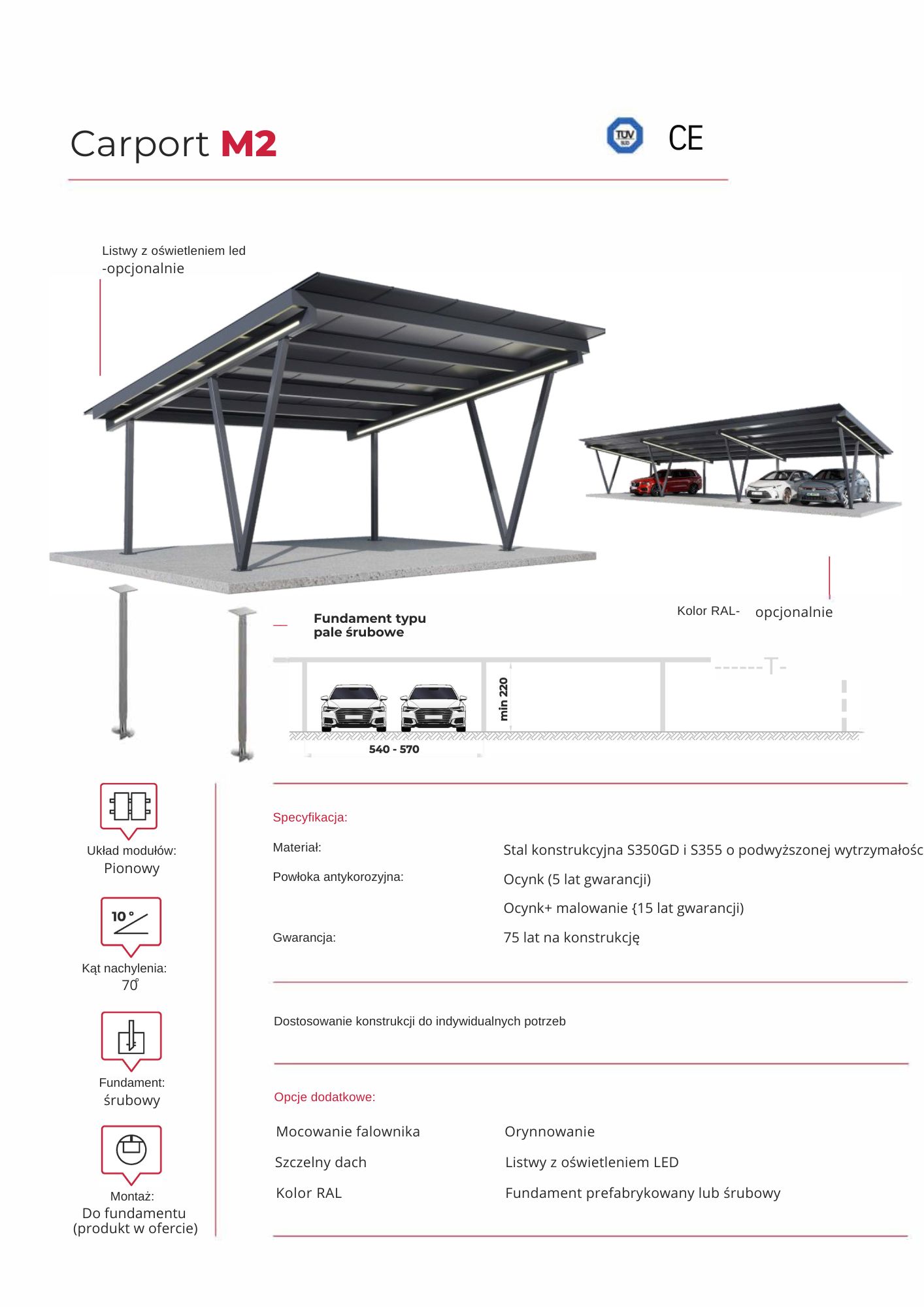 Wiaty / Carport M2 z konstrukcją pod PV (rozstaw podpór 5,7m)