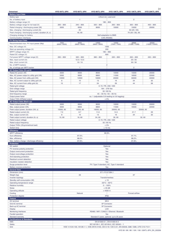 Sofar hybrid inverter HYD6KTL-3PH 3-phase 2xMPPT