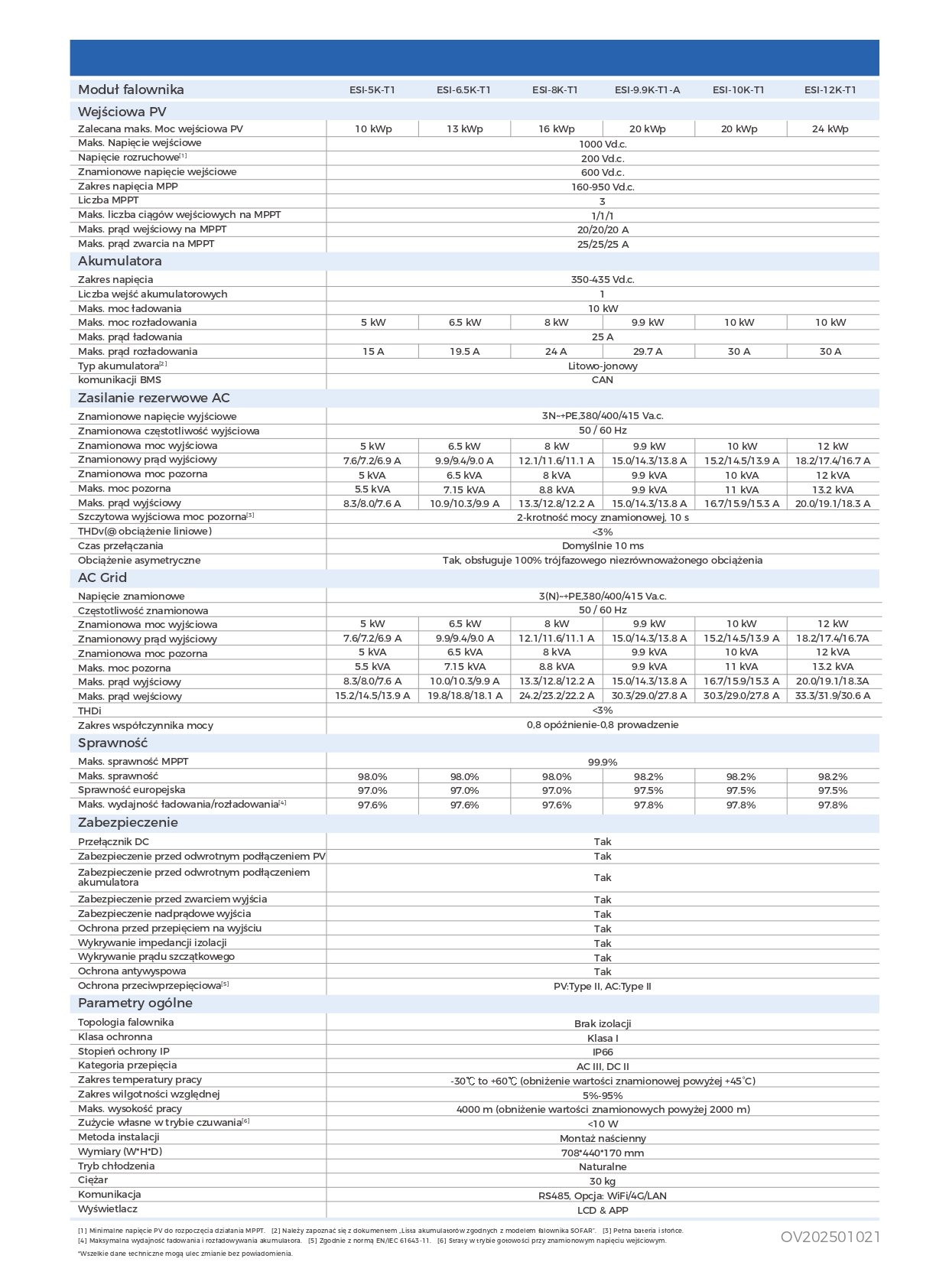 Tryby pracy: On-grid i off-grid (możliwość pracy w trybie wyspowym).